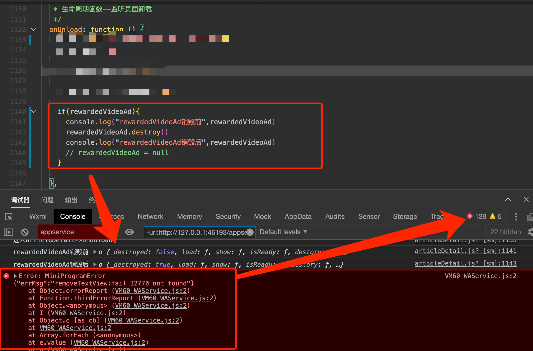 在页面onUnload的时候,调用rewardedVideoAd.destroy(),报错。