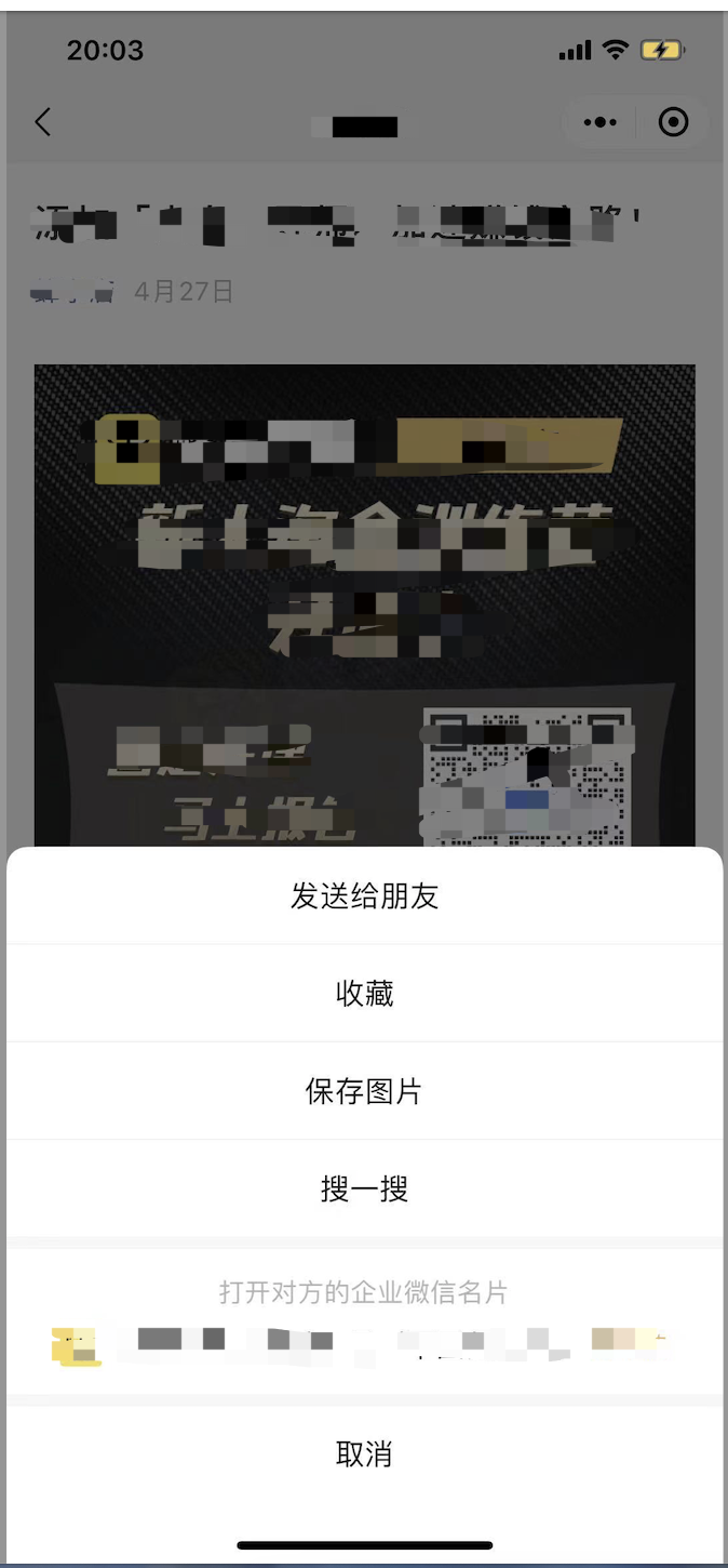 三、支持将企微或者个微的二维码放在公众号推文里,长按推文里的二维码识别跳转