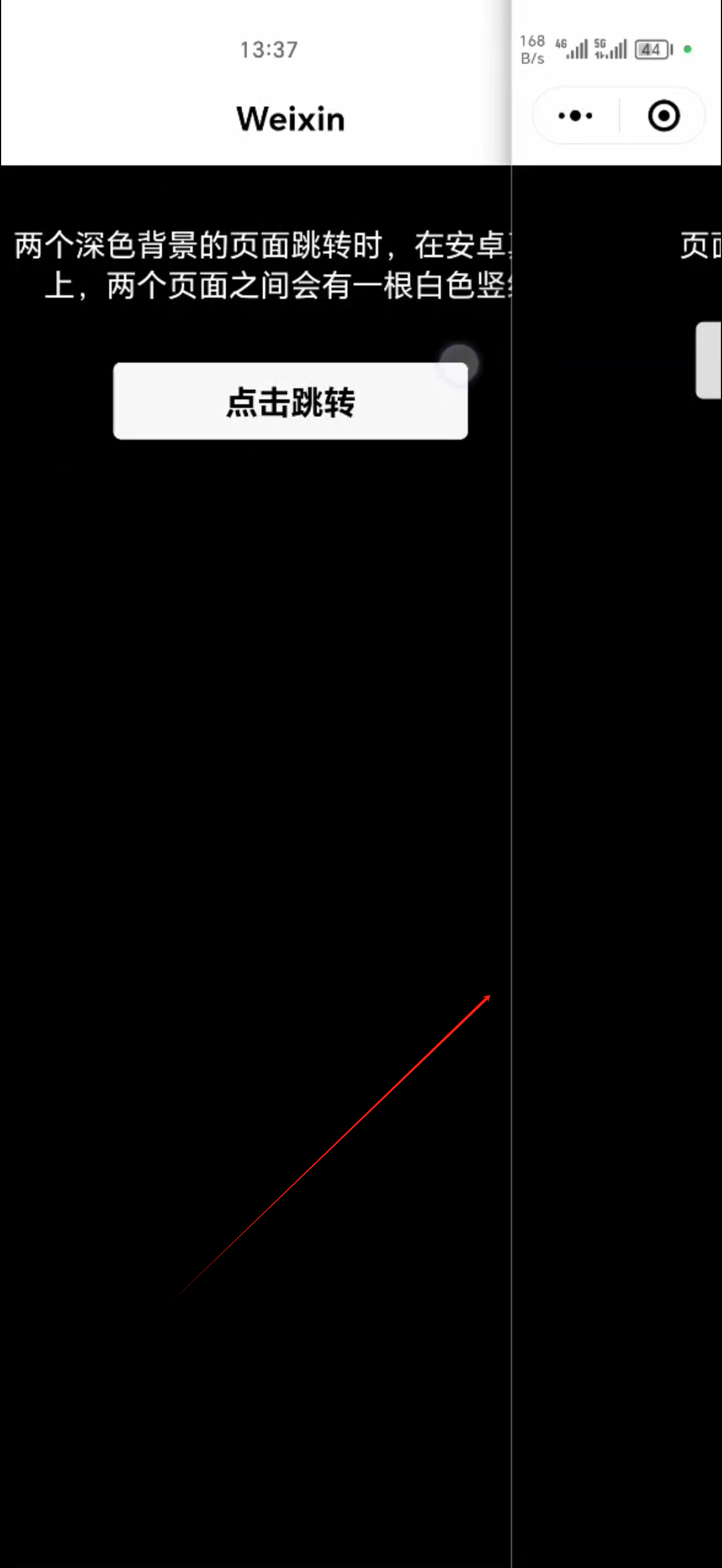 深色背景的页面跳转时,在安卓真机上,两个页面之间会有一根白色竖线
