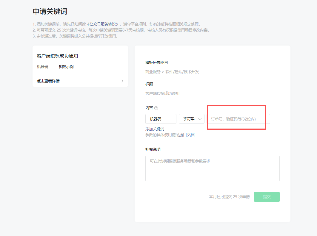 我需要使用微信服务号推送消息业务,通过申请微信的模版消息方式实现,但是微信服务号模版消息只支持不超过32位字符串。现在我的业务要求字符串长度是60多位的长字段,怎么去解决,请给我解决办法。