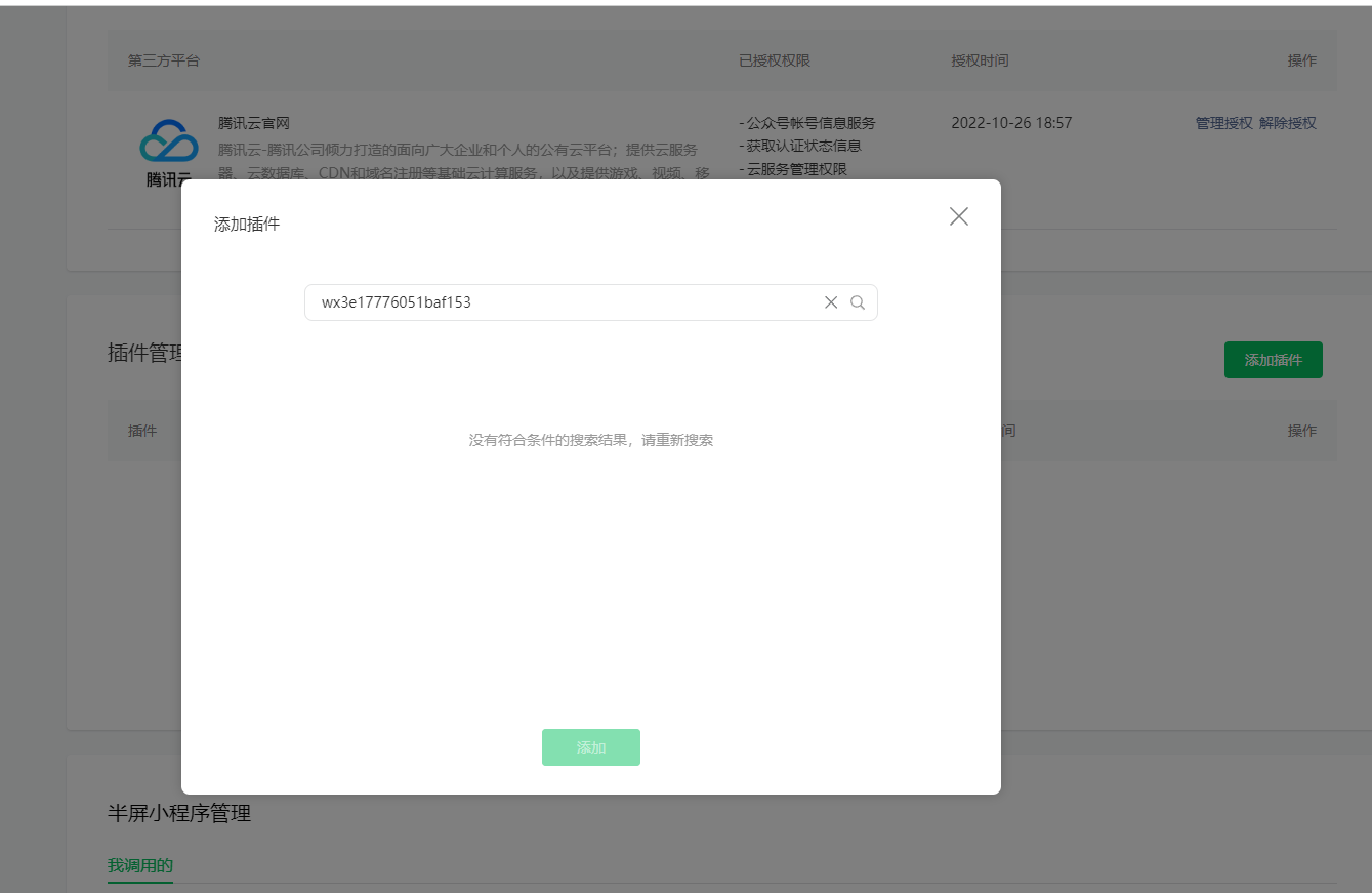 你好,经核实,appid:wx518510331e37a6f8 为【个人主体】类型,appid:wx3e17776051baf153插件的类目是【IT科技-软件服务提供商】,该类目为【非个人主体】类型类目,小程序使用的插件,其插件类目不能超过小程序主体类型当前开放的范围,故该个人主体账号无法申请接入该插件