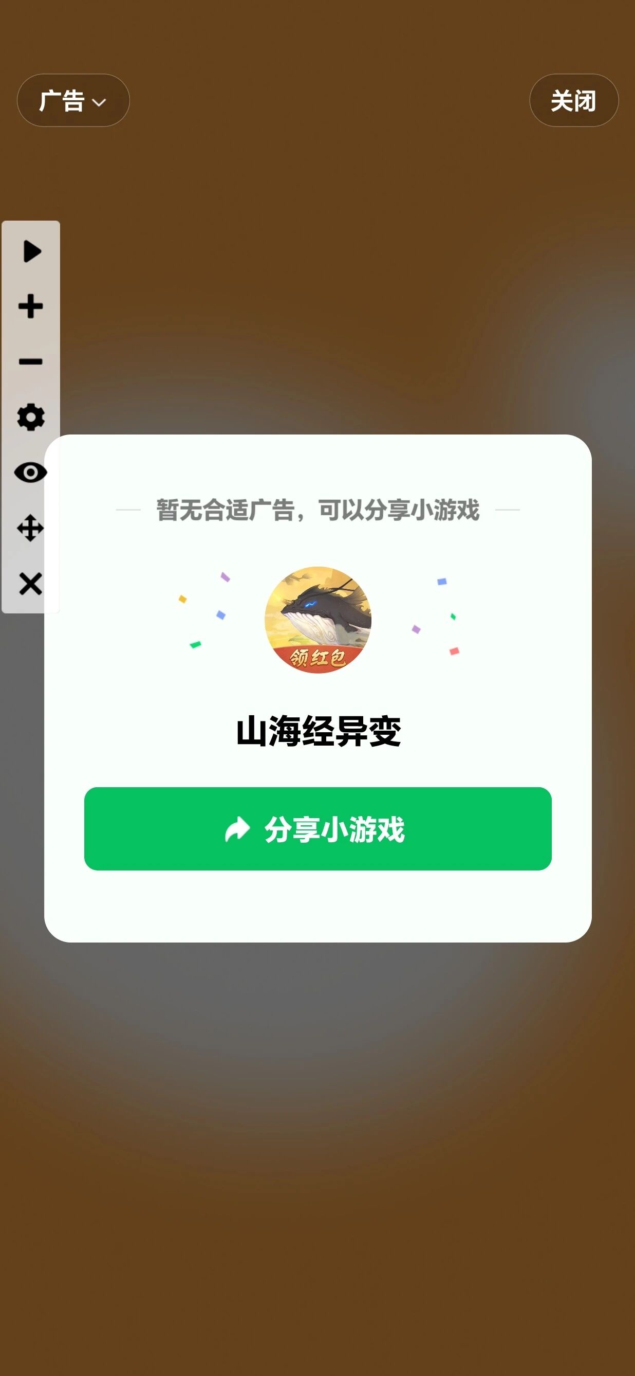 你好,该功能是我们的兜底分享功能,是为保证您在无合适广告的时候也能顺畅体验小游戏,您可通过分享获取激励奖励。