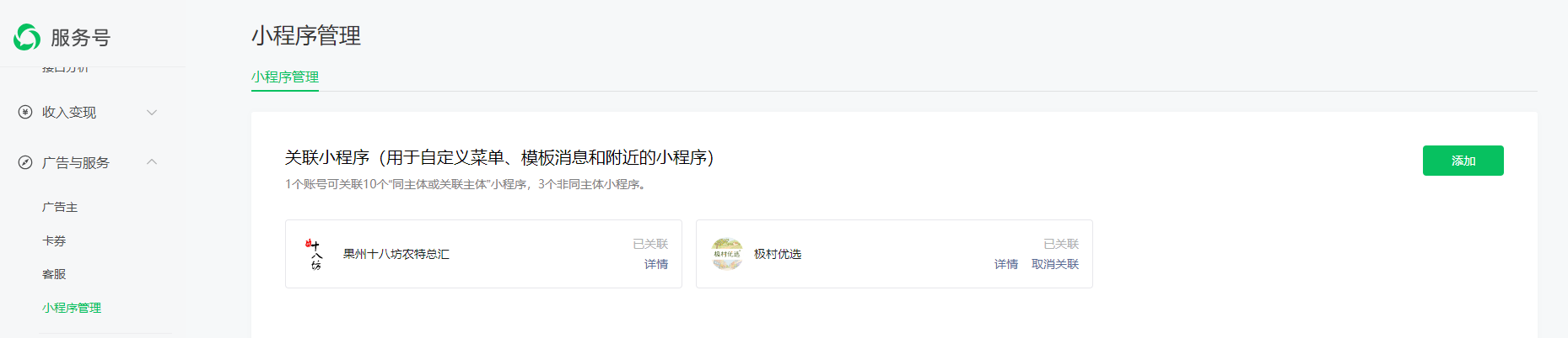 公众号不知什么时候关联了小程序“果州十八坊农特总汇”,找不到该小程序管理员信息,也无法取消关联,应该怎么处理呢?
