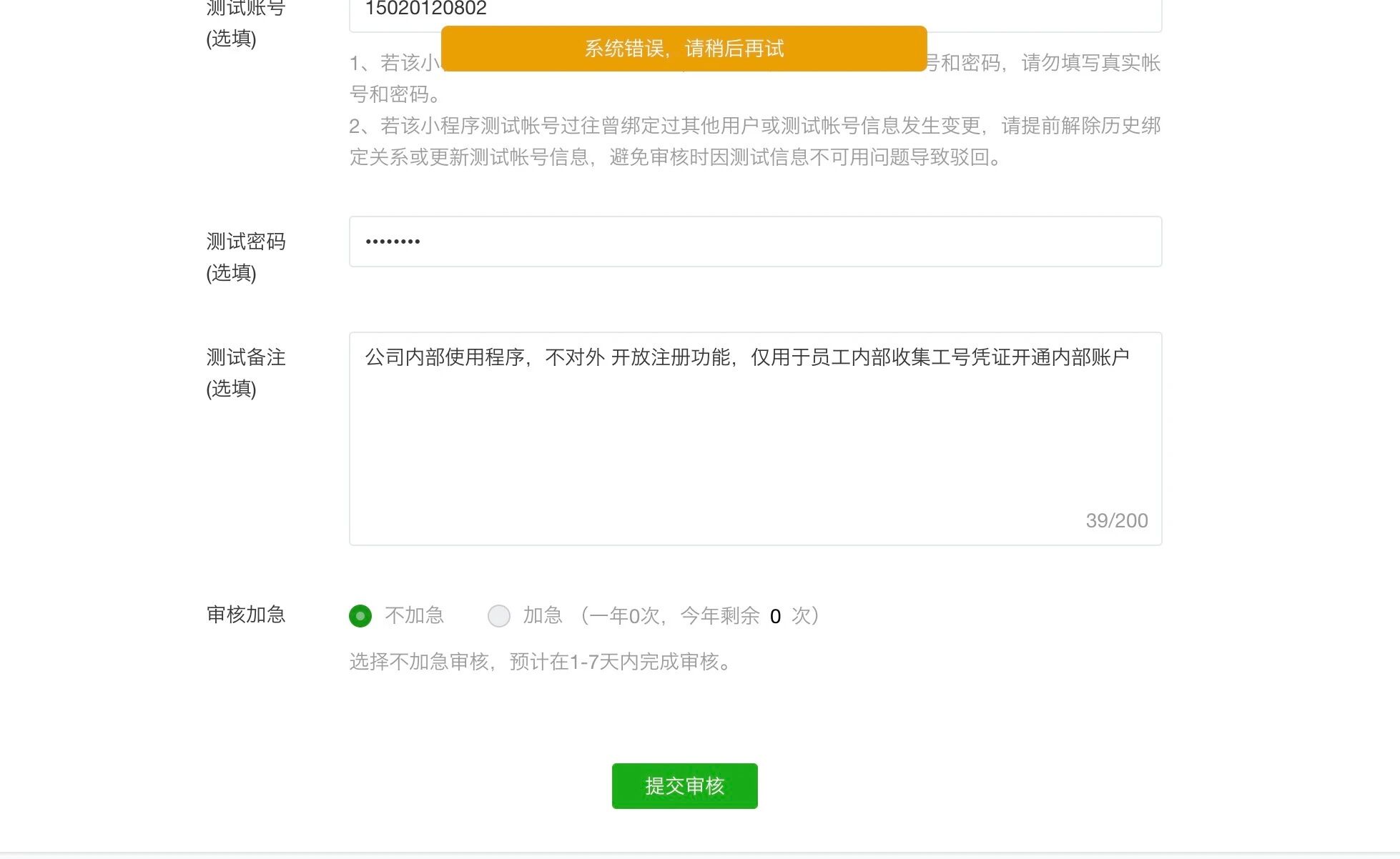 微信太霸道了吧?提交了一次审核就不能再提交了?再提交 就提示系统错误?我不拍人脸都不可以吗?拍号码牌都不行?就是说小程序拍照 功能不能用对吗?