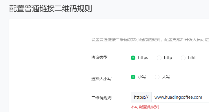 同时,小程序的“配置普通链接二维码规则”功能也不允许配置该网址