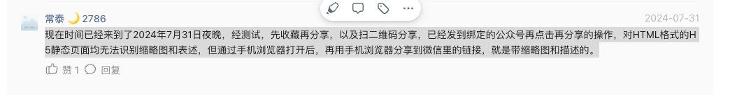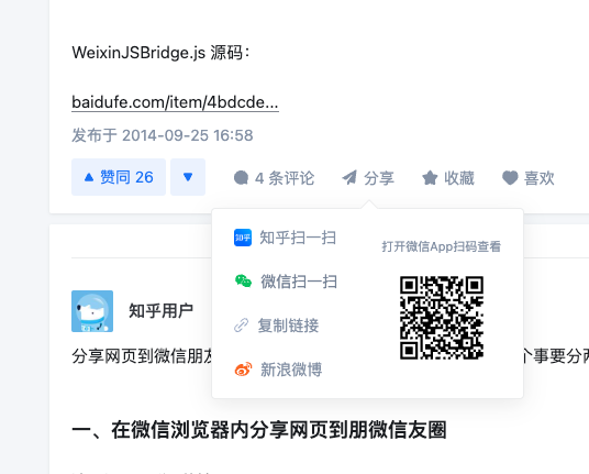 1)同样是在 pc 上,扫描知乎站点生成的二维码分享到微信,就可以展示缩略图和描述