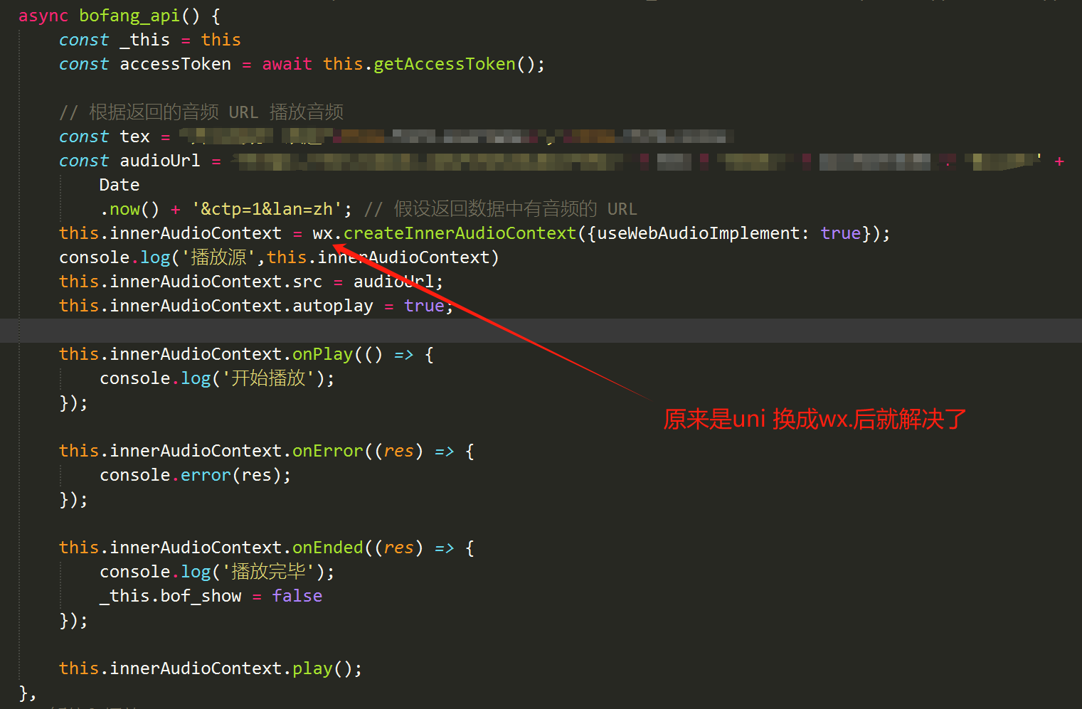 PS:原来是uni.createInnerAudioContext 创建的音频,换成wx后就解决了,应该是uni存在兼容性问题。