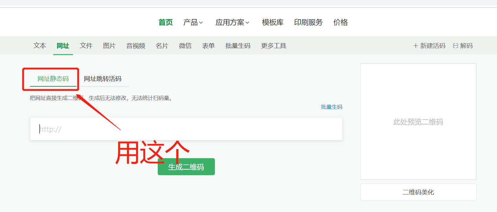 如果你只是想把你自己的业务域名网页生成二维码,不需要统计扫描量、后期也不用改网址但又想二维码图案保持不变。