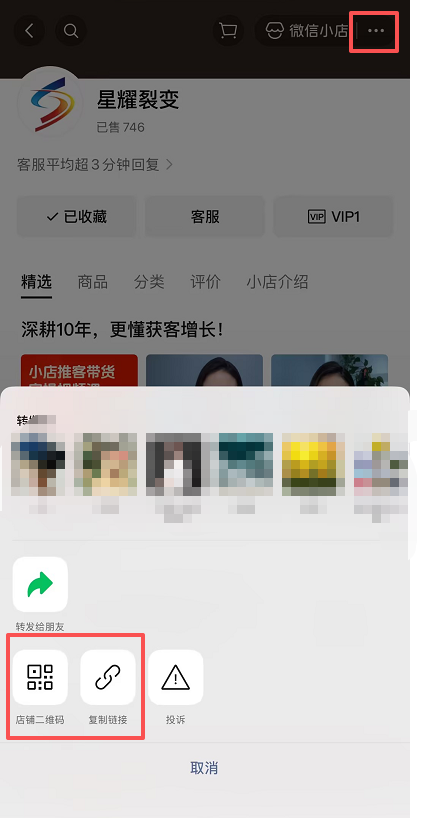 进入微信小店主页,右边有三个点,点进去,把店铺链接复制出来,然后把链接复制到你这个公众号后台的菜单栏里就可以了