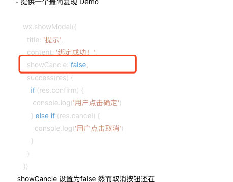 写错了,应该是 showCancel