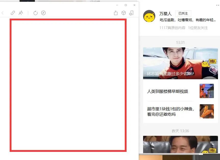 如图,电脑端微信版本更新3.2.1.154后,无法打开任何公众号链接,打开后都是空白,只能用其他浏览器才能打开