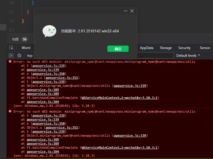 Error: no such WXS module: miniprogram_npm/@vant/weapp/wxs/miniprogram_npm/@vant/weapp/wxs/utils\n\t/preload/page-frame.html:1:40133\nt@https://servicewechat.com/preload/page-frame.html:1:39996
