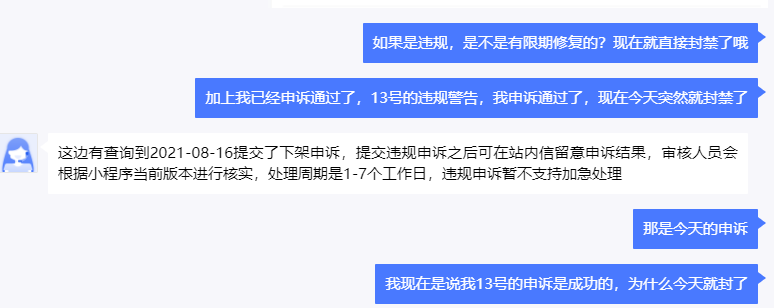 这是咋回事,13日提示我有违规,申诉成功通过后,今天就突然封了,这是什么处理呢?