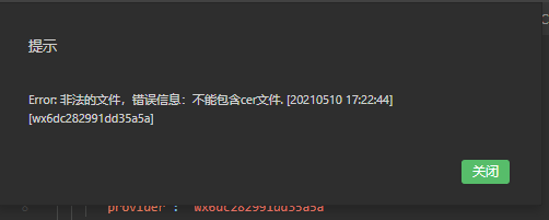 问题:用微信开发工具进行打包时,报错,不支持包内证书预制到plugin目录中