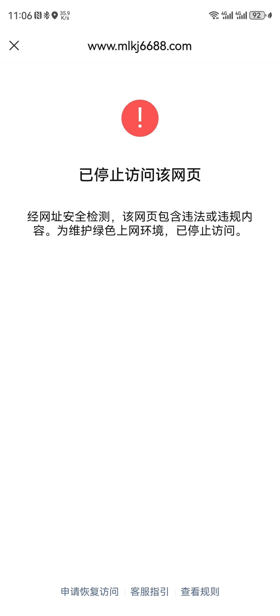 你好,经核实【mlkj6688.com】被手机管家拦截,本系统只处理被微信暂停提供微信内直接访问的服务的外部链接的申诉问题,若非前述事宜,本系统将不予答复。建议登录手机管家官网【http://gj.qq.com/online_server/complain_url.html】自行申诉,知悉。