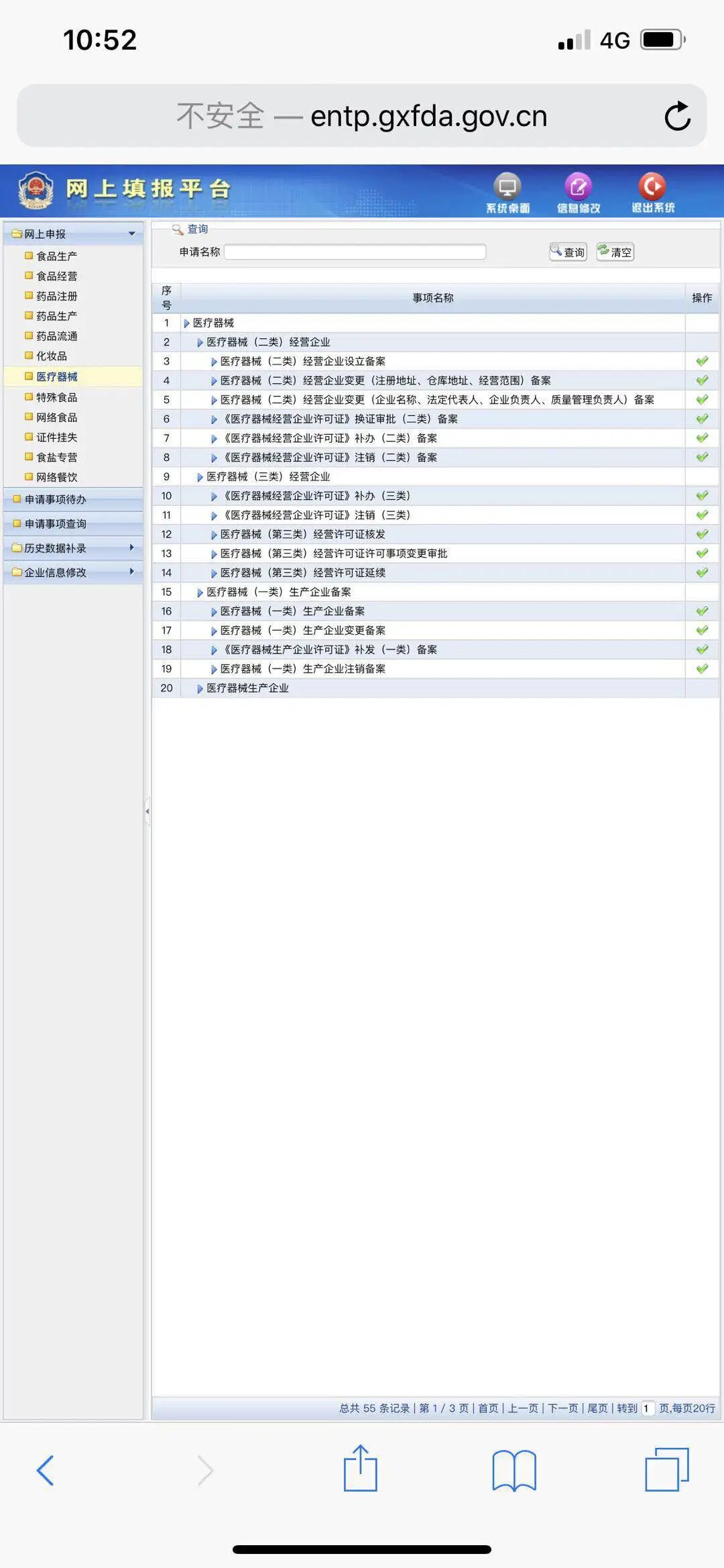 原来医疗器械经营许可证是食品药品监督管理局颁发的,是这个样子的,现在已经不用这种老证了,直接由市场监督管理局颁发的医疗器械经营备案凭证,是这种,官方网站申请的平台已经没有关于医疗器械经营许可证的申请了,只有补办和注销,,食品药品监督管理局也没有这个窗口了