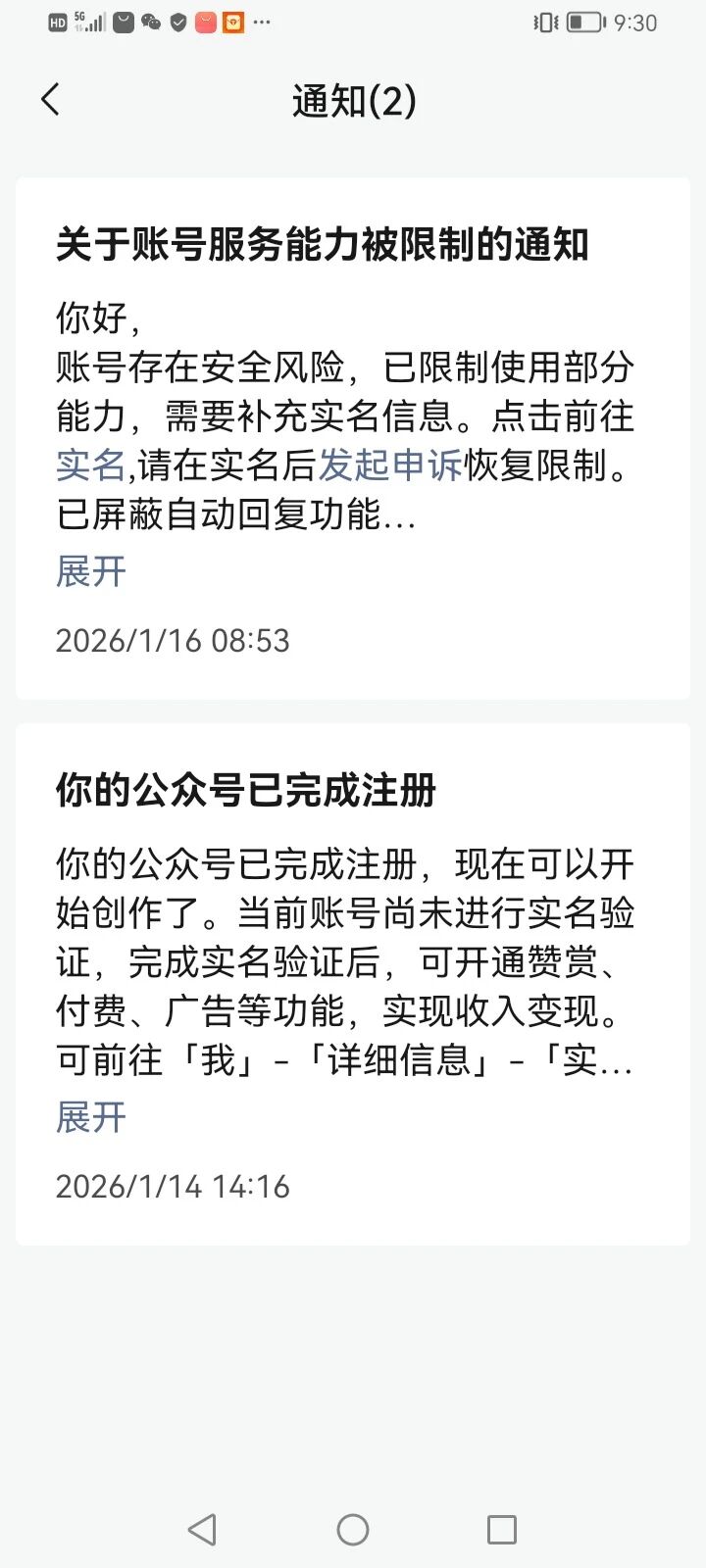 新注册的公众号被提示账号存在风险被限制服务功能,现已实名认证,需要多久可以恢复正常?