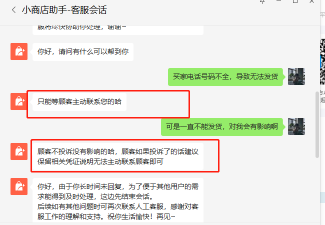 (5)预计恢复发货日期;但因为买家手机号码没有写全,导致无法发货