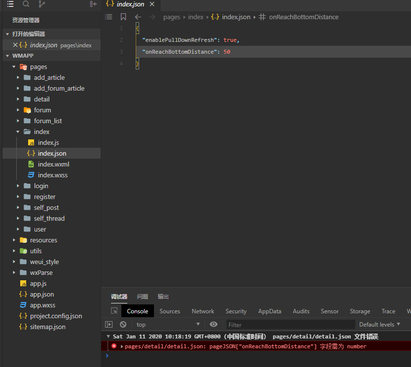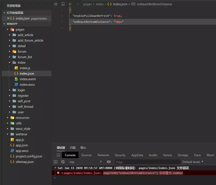 麻烦请教 提示pageJSON["onReachBottomDistance"] 字段需为 number