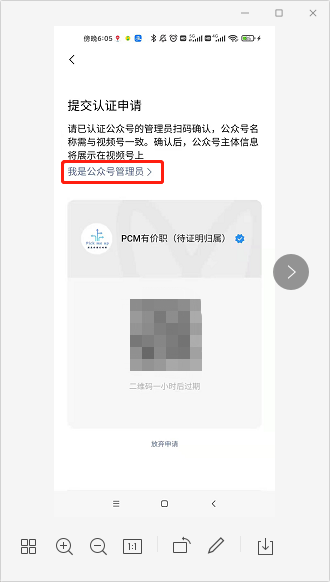 视频号开通时要求证明名称归属,选择归属为企业或机构——点击证明——点击“我是公众号管理员”,显示对方已放弃认证.