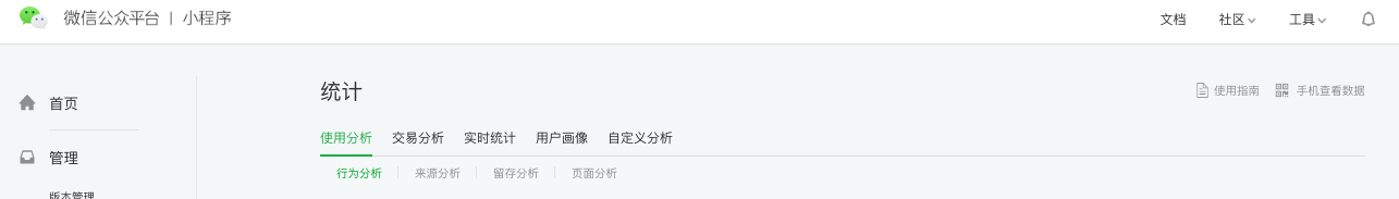 小程序后台“统计”版块内的“行为分析”每个数据的定义是什么?请问哪里可以看到?