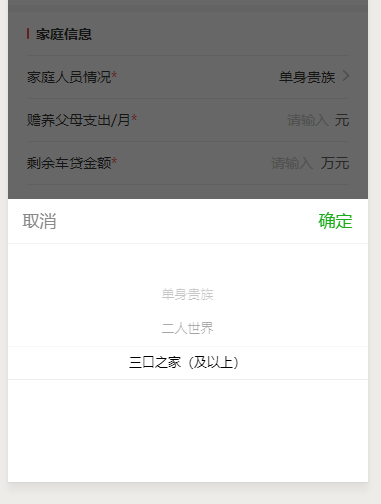 选择这里的‘三口之家(及以上)’之后,返回表单显示出了问题