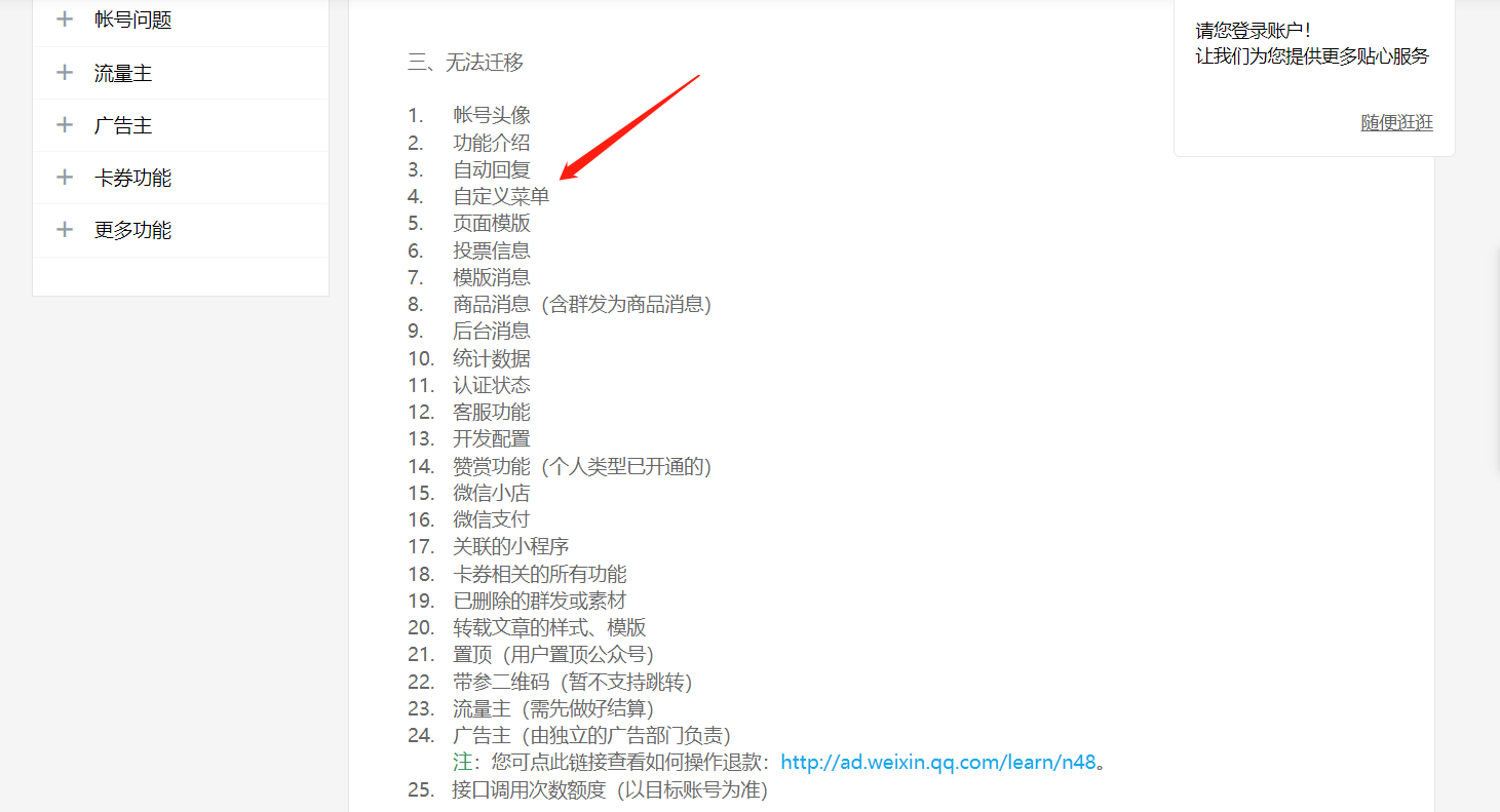 同一个主体从原服务号迁移至新订阅号,原来公众号上的自定义菜单,入口等可以同时迁移吗?