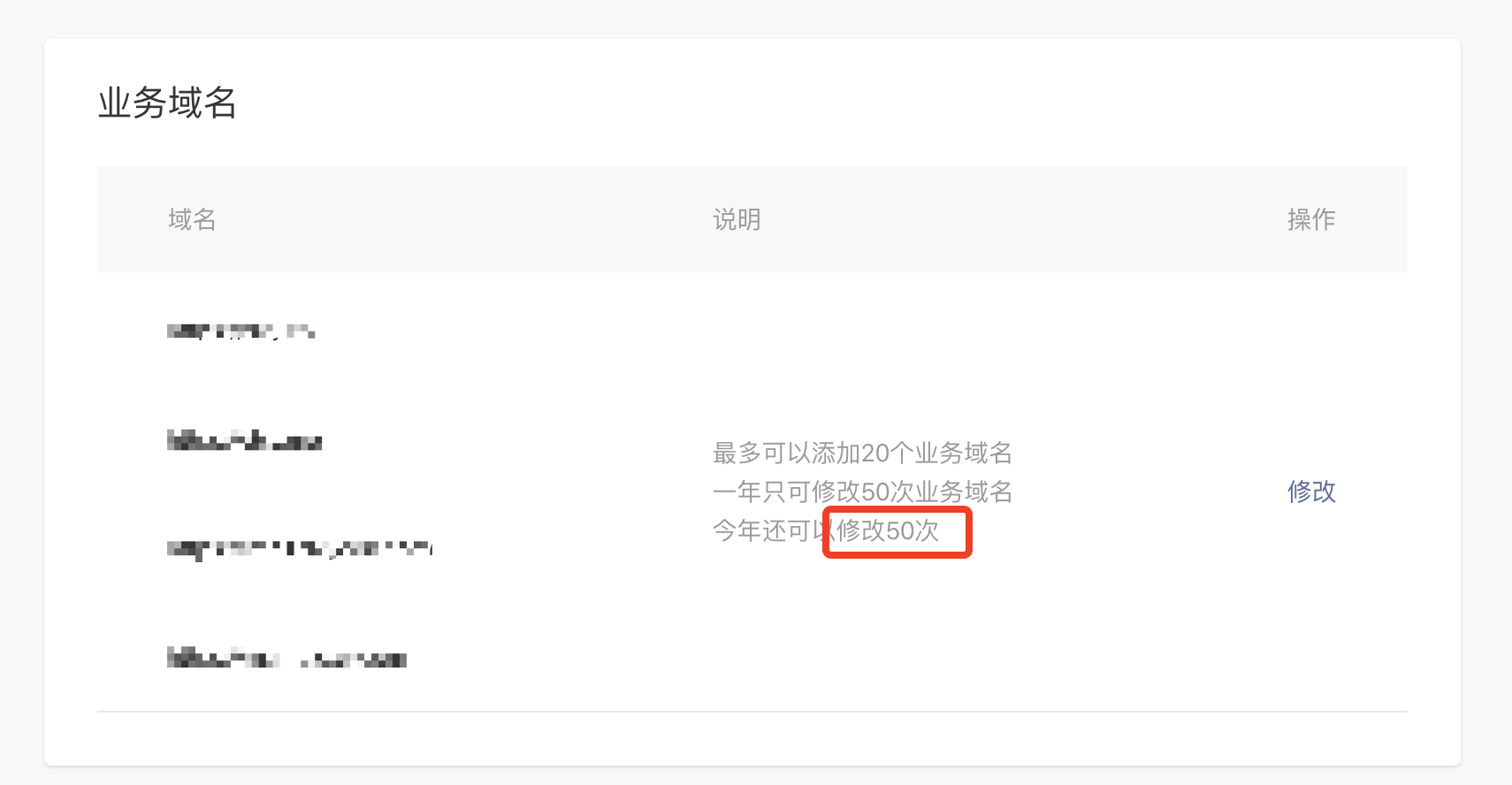 想配置一个业务域名,修改之后提交按钮点击无反应并且返回上一页,也没有修改次数的变化。求解决