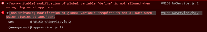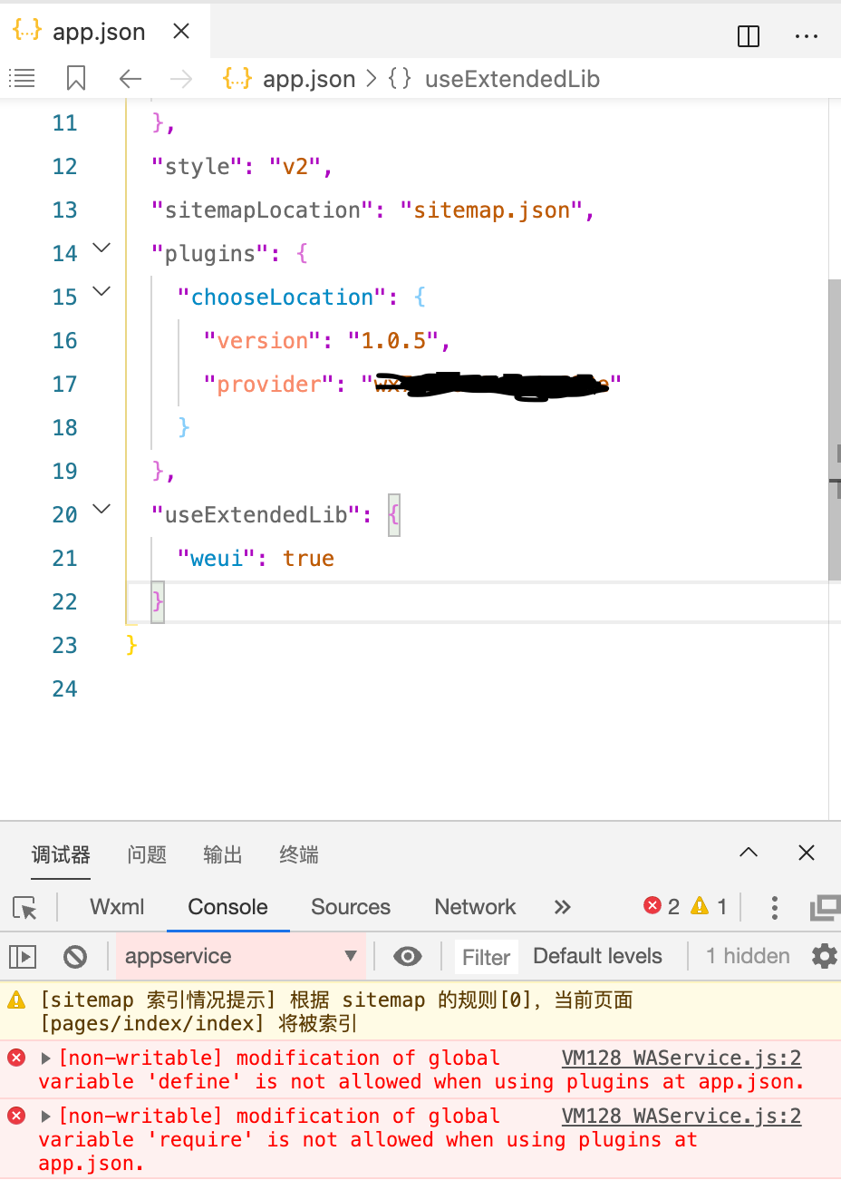 [non-writable] modification of global variable 'define' is not allowed when using plugins at app.json.