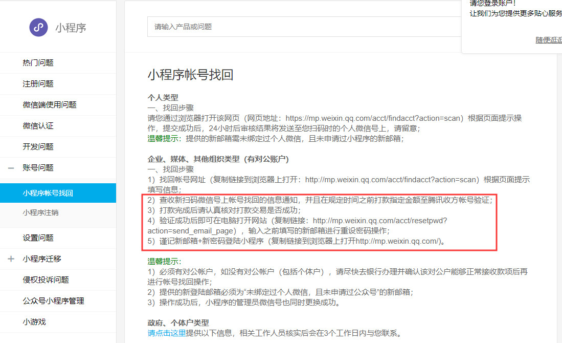 小程序长时间未使用,已经申请找回,但仍然处于冻结状态, 请问怎样解决?