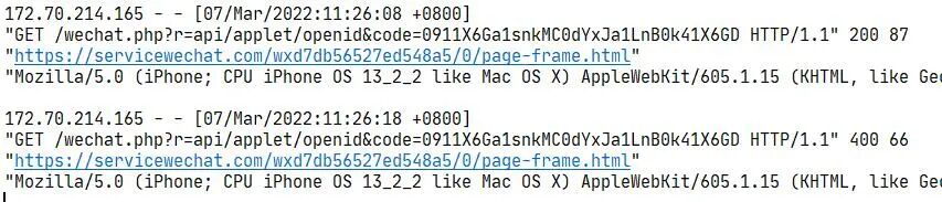 第一次审核未通过 相关日志(相隔10秒,wx.login 返回了同样的 res.code)