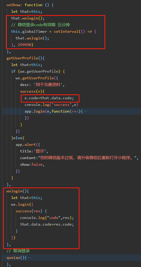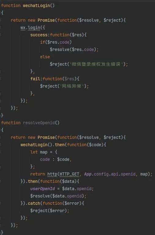 调用 wx.login 取 openid 的代码如下图