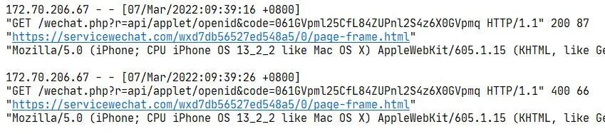 第二次审核未通过 相关日志(相隔10秒,wx.login 返回了同样的 res.code)