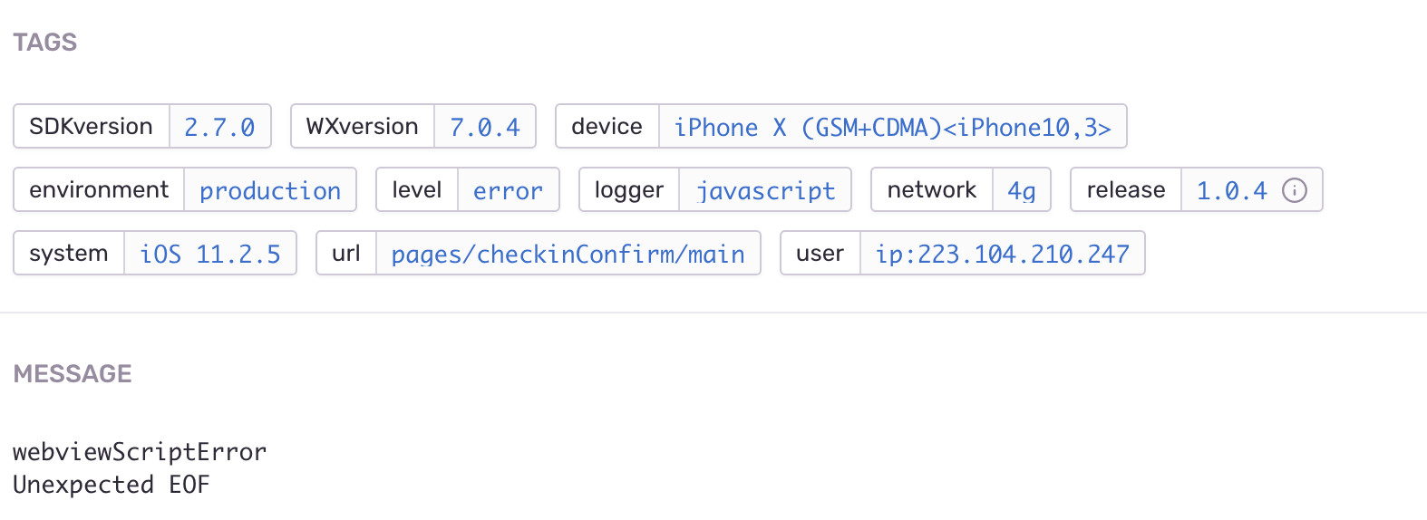 你好,就是不好复现, 出现的概率很少,我们有用sentry,这是更详细的信息,谢谢