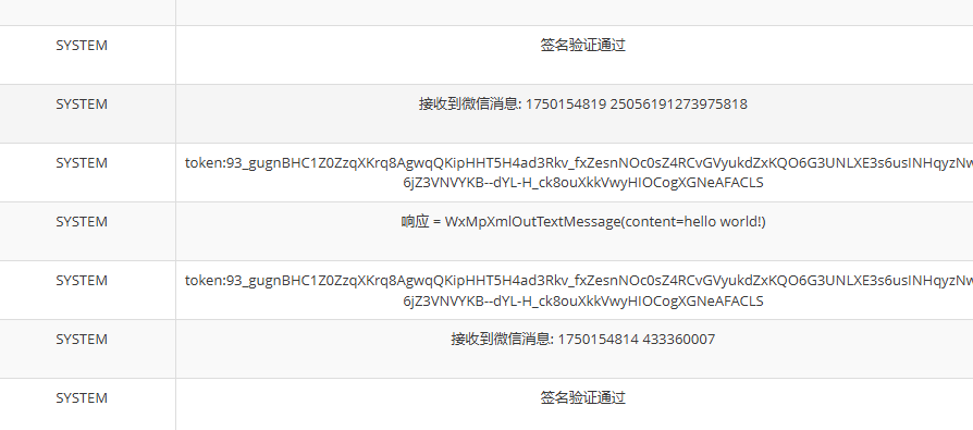 可以看到,接收到的消息竟然只是 俩串数字,以为和token有关系,获取了token 没啥用。签名验证通过,使用的是测试号。