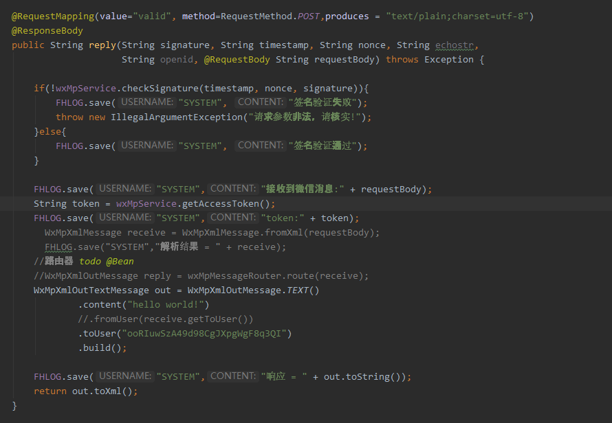 这个valid接口是你自己写的接口,难道不是你主动调用传递的 requestBody 参数吗?微信公众号的接口参数及响应才是 xml 格式的,没明白你想表达什么