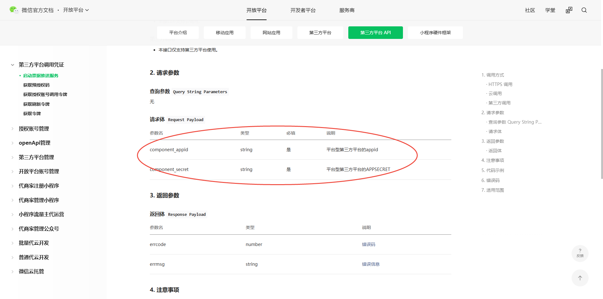 你好,1、核实调用接口时appid、secret传错了,这里需要传第三方平台的appid、secret信息 ,而不是小程序的信息 https://developers.weixin.qq.com/doc/oplatform/openApi/ticket-token/api_startpushticket.html