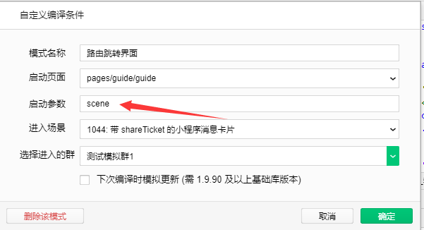 var scene = decodeURIComponent(options.scene)//debuggerconsole.log('打印scene',scene);2018-11-13 补图,可以通过scene取值的配置模式如下:然后具体的操作也都在后面卢霄霄的回复中了