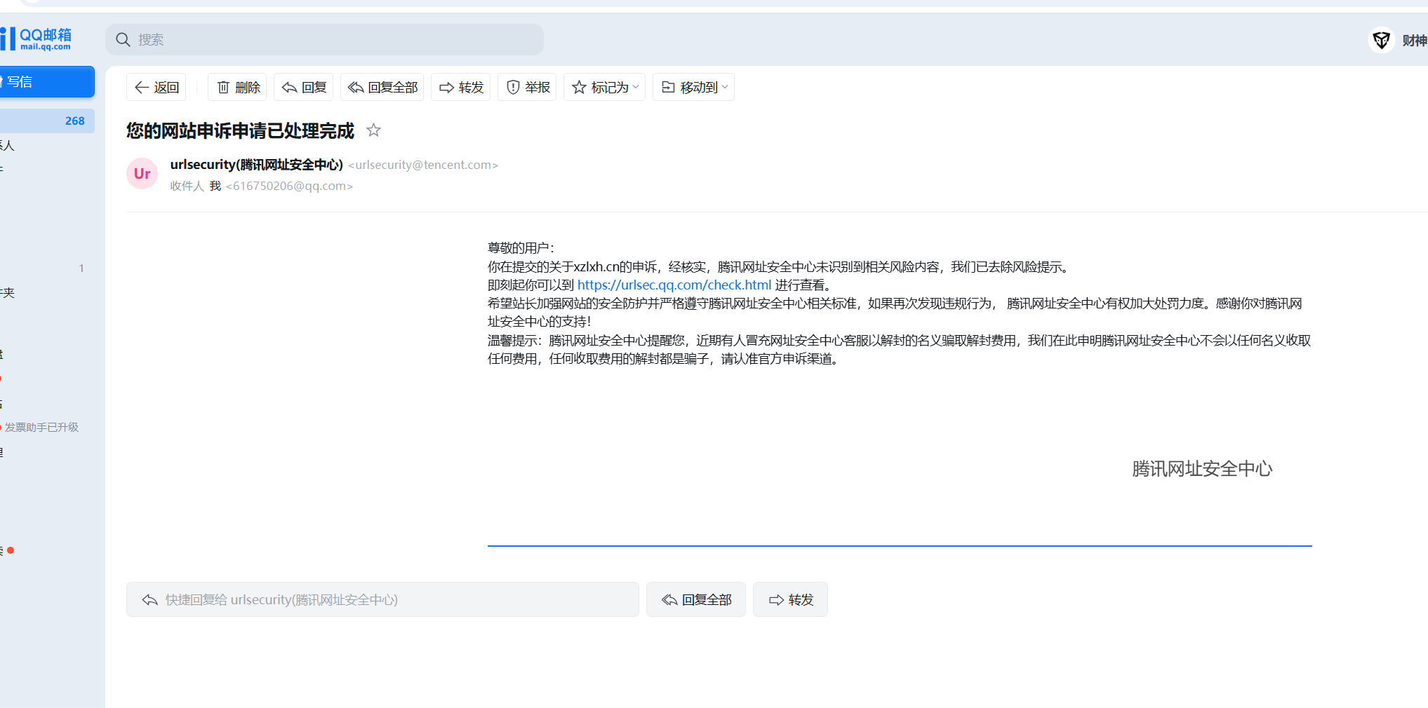 我司域名xzlxh.cn在微信里面打开拦截提示继续访问我们也已处理木马链接已经清除