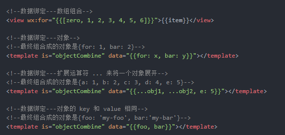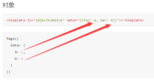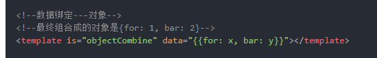test="{for: 1, bar: 2}"这样就行了,,你看文档看的<template is="objectCombine" data="{{for: a, bar: b}}"></template>这个了吧!!