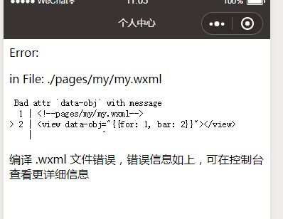 <view class="spec" data-obj="{for: 1, bar: 2}">11</view>