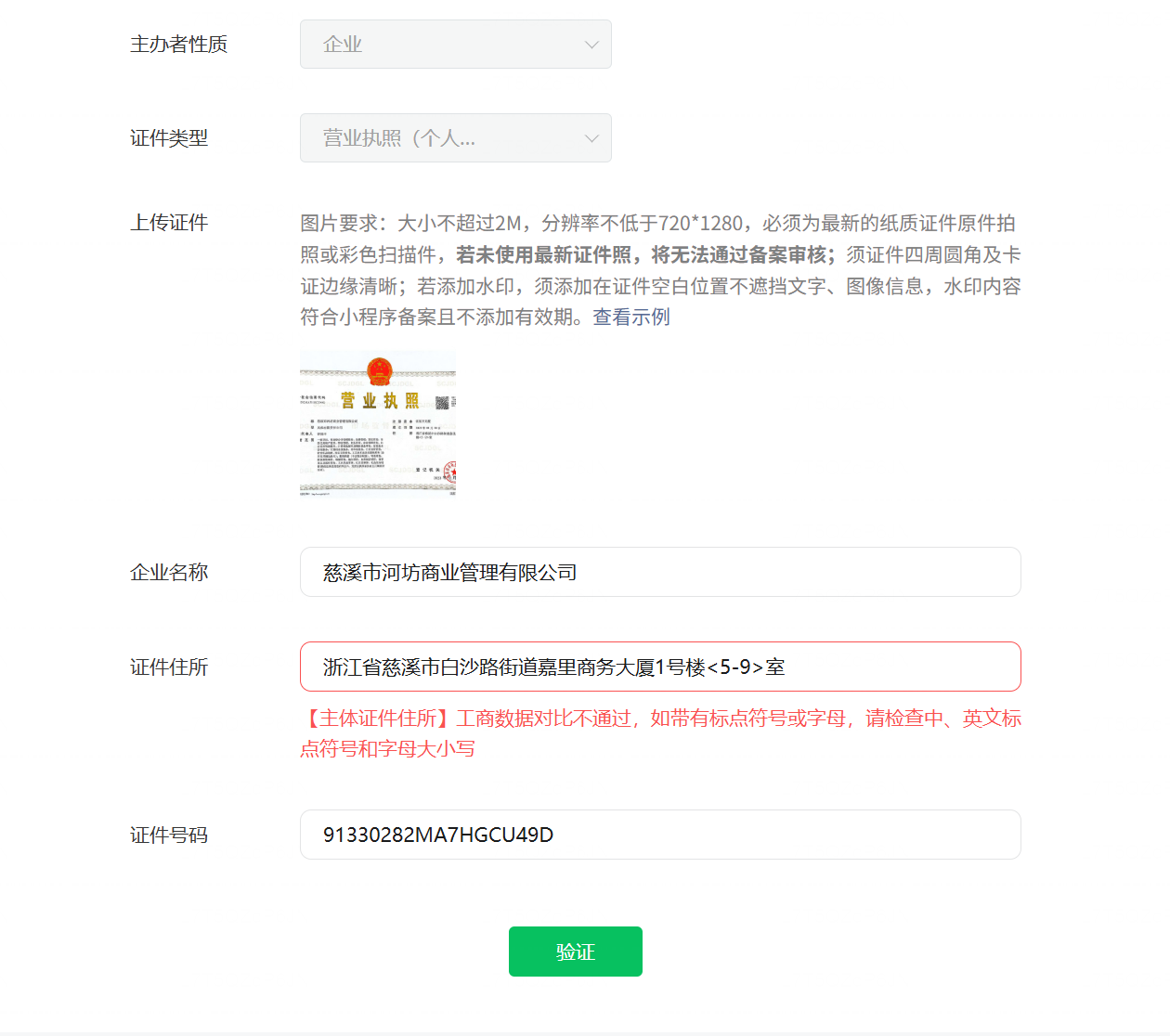 目前在进行备案,但是总提示工商数据比对不通过,对比了国家企业信息公示系统是一致的