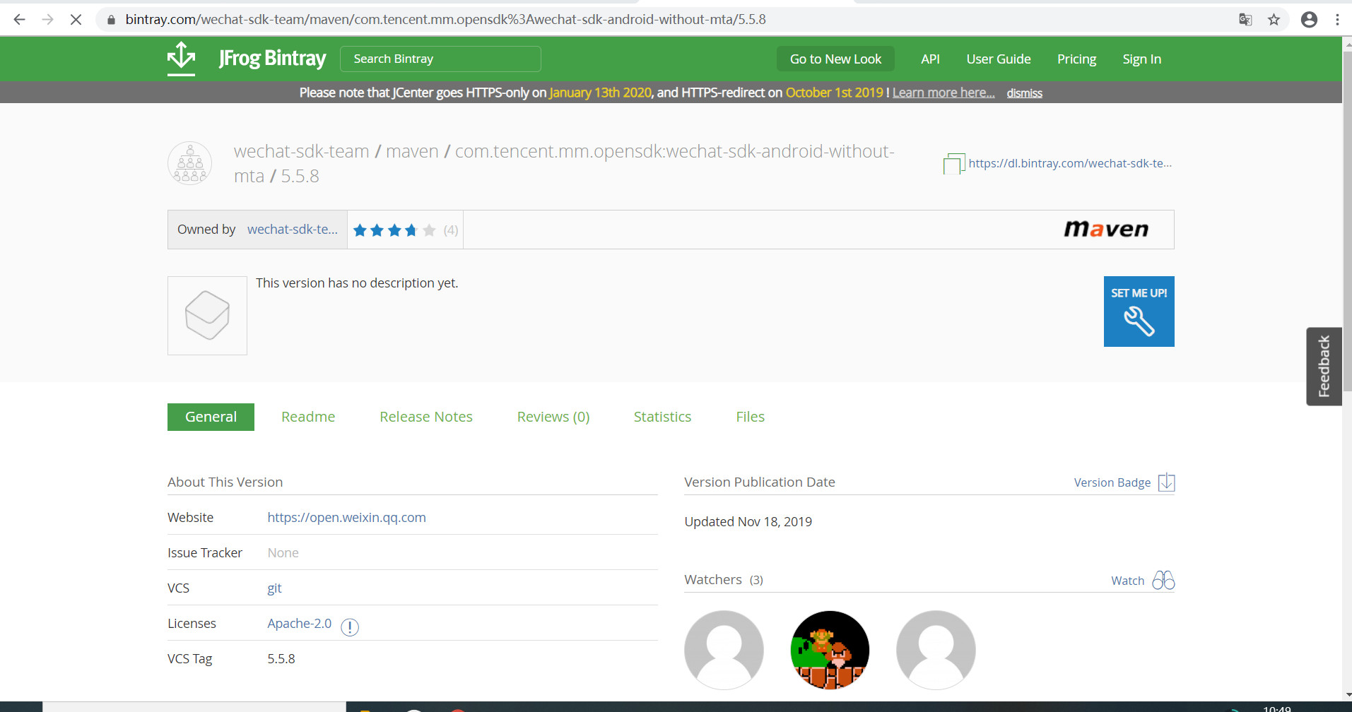 https://bintray.com/wechat-sdk-team/maven这个根本访问不了,要下载微信SDK都没法下。SDK能否放到国内服务器提供下载