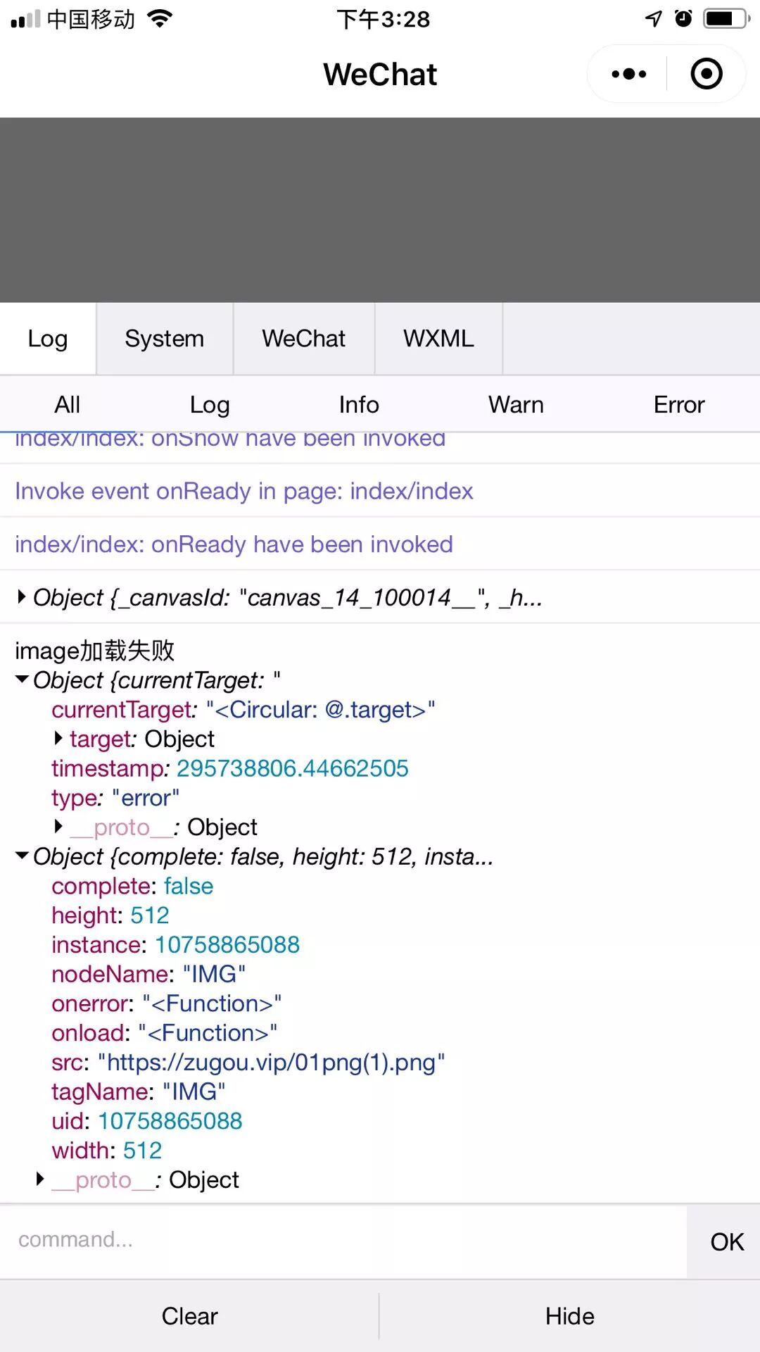 onReady(){ const query = wx.createSelectorQuery(); query.select( '#mycanvas' ).node().exec((res) => { var canvas = res[0].node console.log(canvas); var imagerSrc = 'https://zugou.vip/01png(1).png' var image = canvas.createImage(); image.src = imagerSrc; image.width = 512; image.height = 512; image.onload = function (res) { console.log( 'iamge加载成功' ,res ,image) } image.onerror = function (err) { console.log( 'image加载失败' , err, image) } }) } |