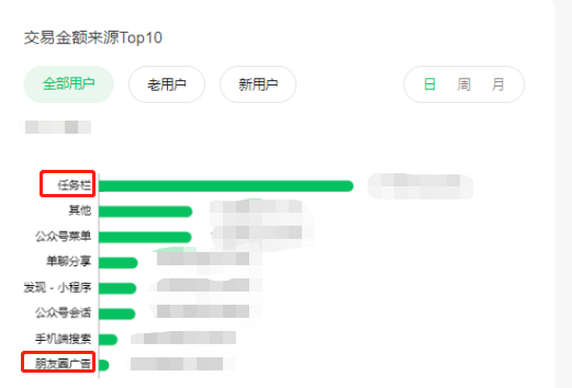 比如:交易金额来源中的任务栏:用户是从任务栏进入后并直接完成支付行为,中途没有退出过小程序。