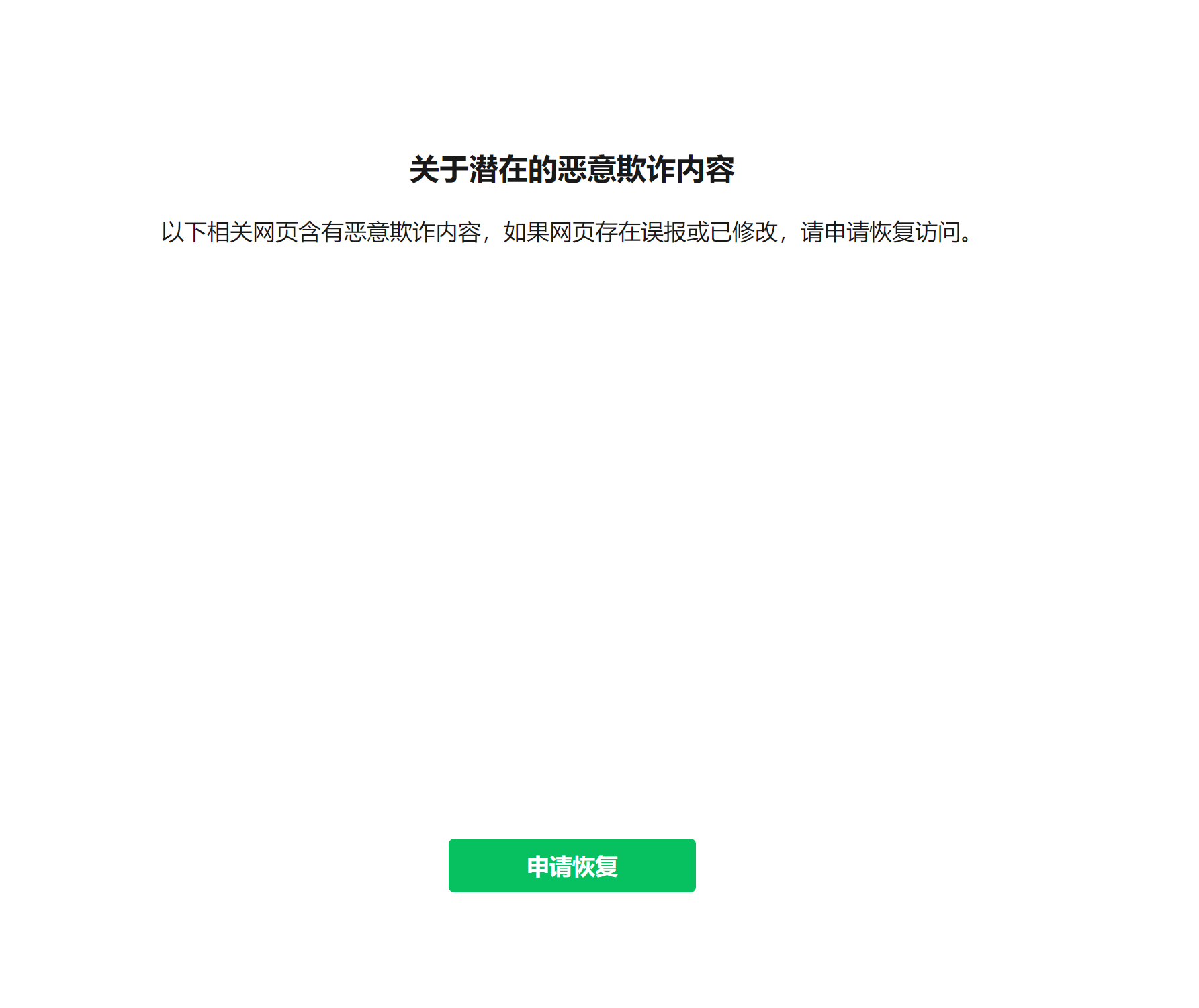 存在违规内容,请对内容进行修改后,再点击停止访问页面中间的“申请恢复访问”按钮进行自行申诉。