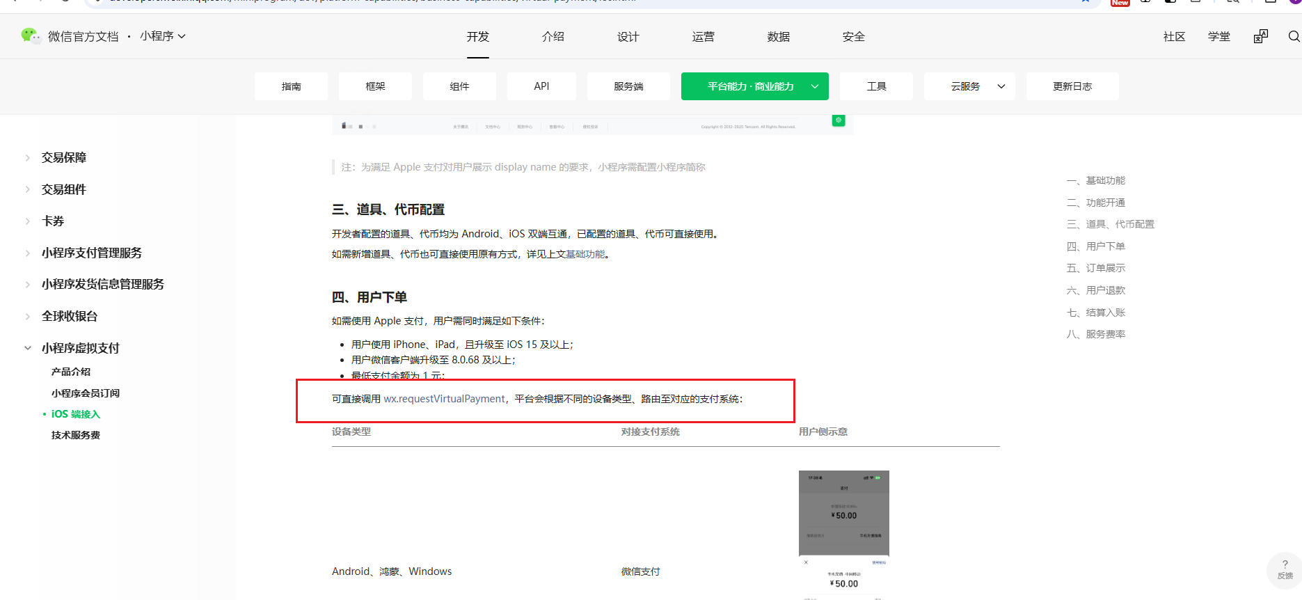 文档中说直接调用 wx.requestVirtualPayment 就行是什么意思, 不区分安卓和ios全部都调用 wx.requestVirtualPayment, 微信平台会根据不同的设备类型、路由至对应的支付系统吗? wx.requestPayment()和wx.requestVirtualPayment()参数都一样