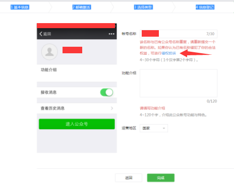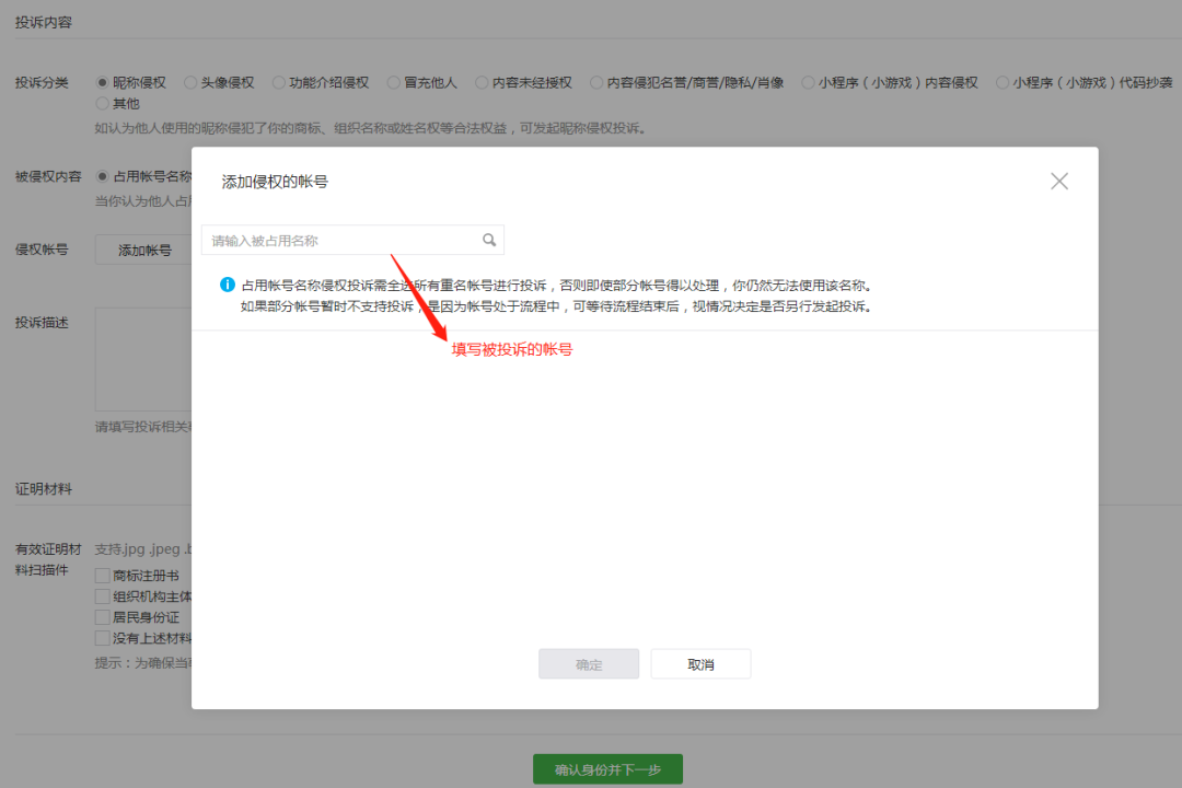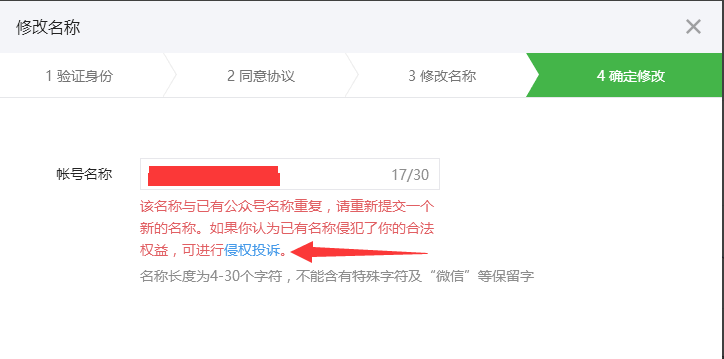 三、若注册过程中填写帐号名称或者认证改名过程中发现重名帐号,可发起侵权投诉;