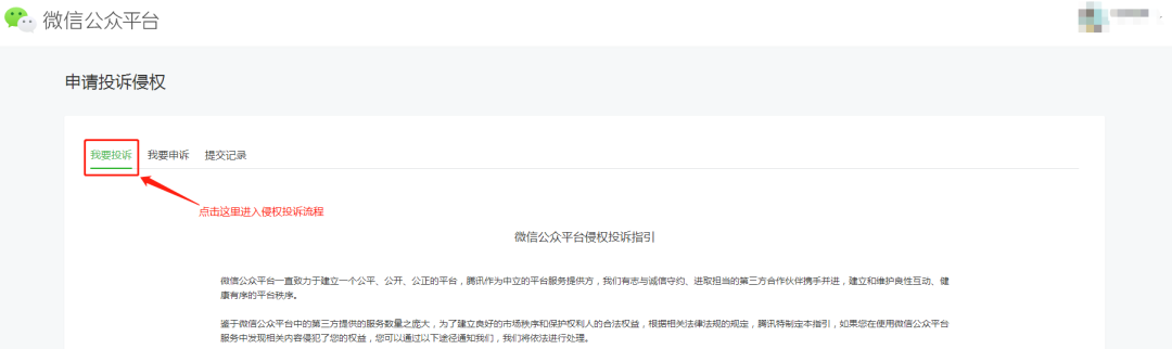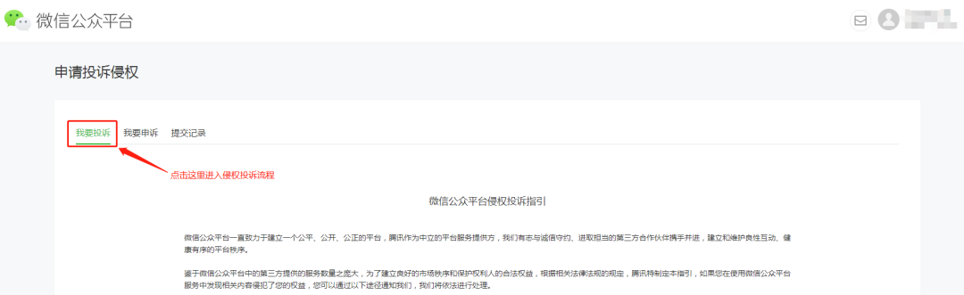 一、若有微信公众号,发现他人侵犯了你的合法权益 ,可发起投诉: