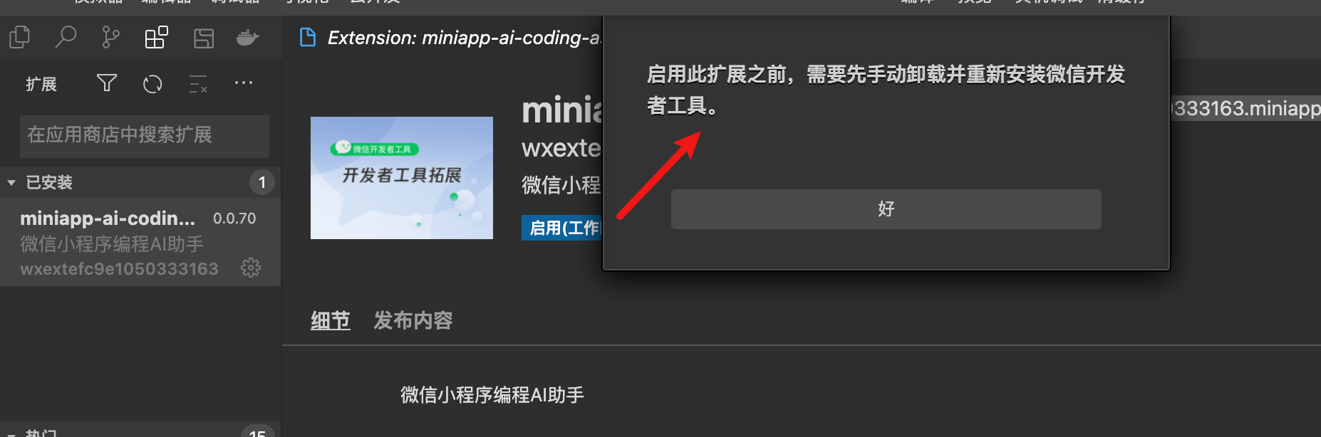 下载最新版 微信开发者工具 ,在「设置-扩展设置-编辑器扩展」中,安装「腾讯云代码助手 CodeBuddy」插件。